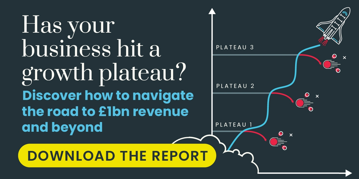 Growth plateaus are often inevitable as companies evolve and scale. In some cases, they are unavoidable due to external factors. Our own analysis of the long-term performance of 1,500 UK small- to medium-sized businesses found that almost all will see their growth slow, stall or decline on the road to £1bn in revenue.